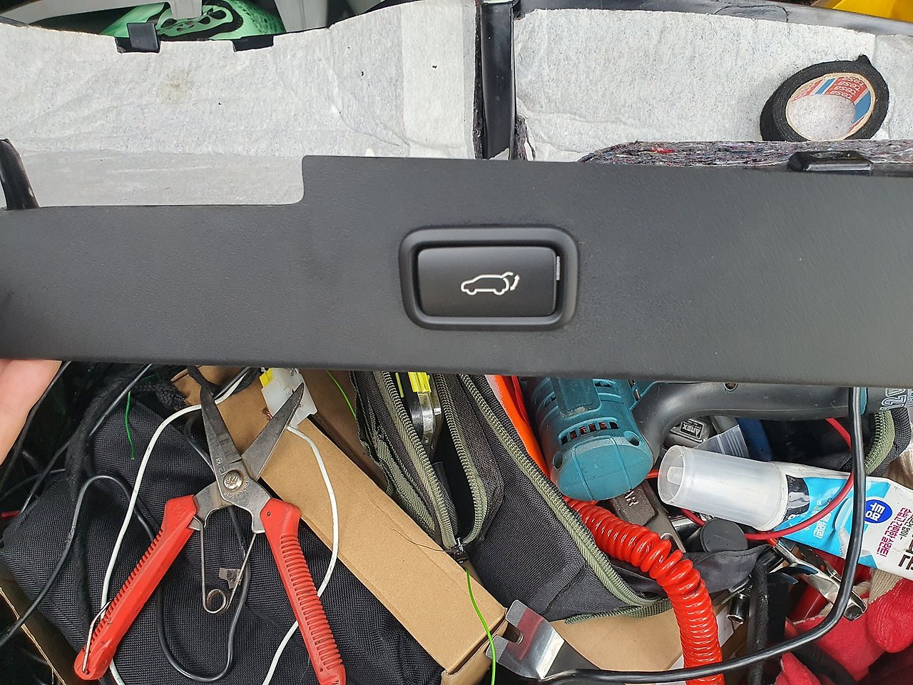 순정 스위치는 구하기 힘들어 기아 쏘렌토용 스위치를 사용하여 트렁크 스위치 버튼을 심어봅니다. 조명선은 미리 준비하여 땡겨놓았습니다.
